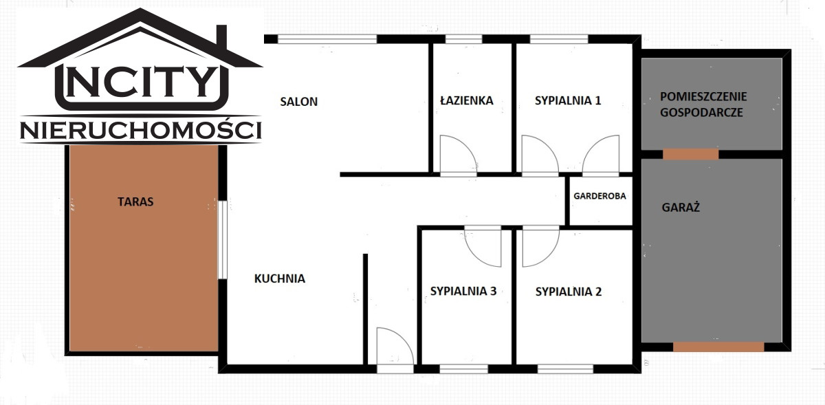Duży funkcjonalny garaż z bramą na pilota. Z garażu przejście do domu przez pomieszczenie gospodarcze, gdzie można pozostawić wszelkie zakupy i jest jeszcze mnóstwo miejsca na narzędzia ogrodowe czy inne mniej przydatne przedmioty.