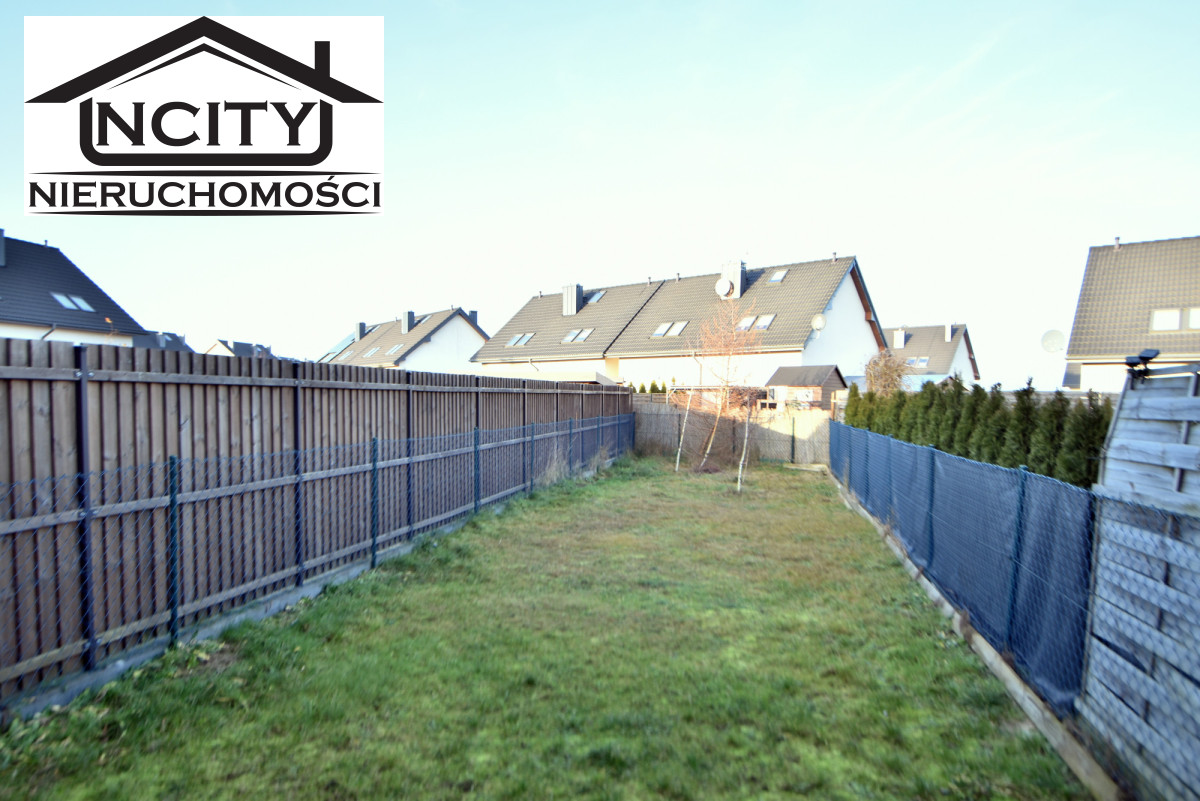 Ogród od strony północno-zachodniej o powierzchni ok 160 m2, teren ogrodzony, doskonałe miejsce do rekreacji. Front domu od strony południowo-wschodniej - podjazd na 2 samochody osobowe wraz z oświetleniem podjazdu i wejścia do domu.